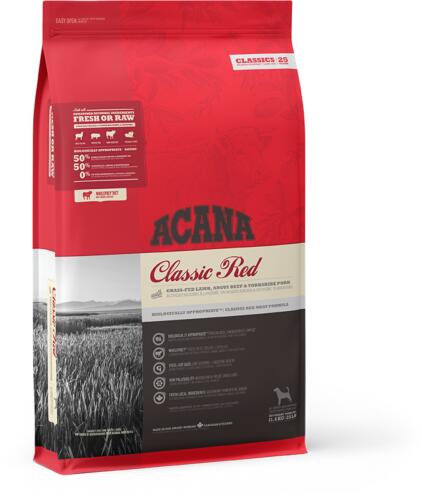 A modern kutyák nemcsak képesek megenni őseik táplálékát, hanem szükségük is van rá a kiváló egészségi állapot fenntartásához. Pontosan ezért készül az ACANA Red Meat nyers* marhából,  dehidratált bárányból, és nyers* sertésből. Semmi csirke vagy bármiféle baromfiszármazék, csak kizárólag vörös húsok. Az ACANA Red Meat alacsony glikémiás gyöngyárpát, borsót és zabot tartalmaz, ezért a vércukor szintje stabil marad, csökkentve az elhízás kockázatát.
