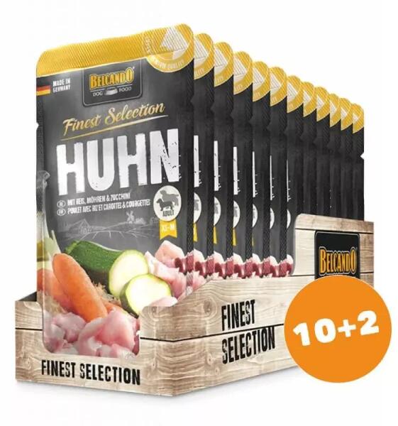Csirkehús rizzsel, sárgarépával és cukkínivel 125g BELCANDO® FINEST SELECTION kutyaeledelKiváló receptúrák egy etetési méretben csomagolva. Szaftos, finom hozzávalókkal ízesített, kíméletesen főzött hús, tasakba kiporciózva. A hidegen sajtolt bogáncsolaj létfontosságú telítetlen zsírsavakat ad hozzá. A BELCANDO® FINEST SELECTION rendkívüli ízletességének és hasznosíthatóságának köszönhetően kiváló az érzékeny és válogatós kutyáknak. Minőségi garancia:A BELCANDO FINEST SELECTION kutyaeledel gondosan és kíméletesen feldolgozott természetes termékekből, aroma, színező- és tartósítószerek használata nélkül készült. Etetési javaslat: keverje a BELCANDO FINEST SELECTION kutyaeledelt a BELCANDO szárazeledellel, így kutyája nap mint nap egy új íz világgal fogyaszthatja kedvenc eledelét. Szobahőmérsékleten, a táblázatnak megfelelő adagban etethető. Mindig álljon a kutya rendelkezésére friss ivóvíz!
