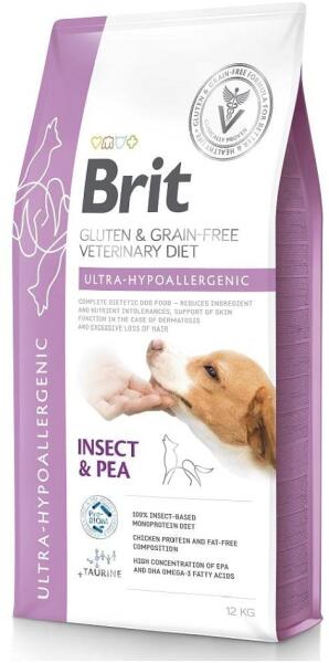 Brit GF Veterinary Diets kutya ultrahipoallergén rovar 12 kg - TermékleírásTeljes értékű diétás eledel kutyáknak – csökkenti az összetevők és tápanyagok intoleranciáját. Rovarízű étel borsóval. Javallatok: