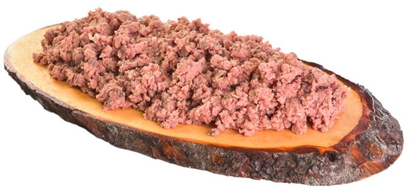 Öss zetevők: 85 % hús és szervek (59 % pulyka, 26 % fácán), 9 % húsleves, 4 % málnalevelek, 1 % ásványi anyagok, 1 % lenmagolaj Analitikai összetevők: fehérje 11 %, zsír 8 %, rostok 0,4 %, hamu 2,5 %, nedvességtartalom 78 %, kalcium 0,2 %, foszfor 0,2 %, nátrium 0,2 %, omega-3 0,15 %