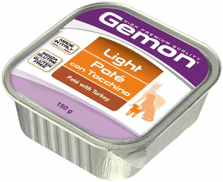 A Paté Light with Turkey teljes értékű táplálék 1-8 év közötti felnőtt kutyák számáraFinom recept Olaszországban készült ideális mindenféle állatnak könnyű és emészthető táplálékraHús és melléktermékek 80 pulyka 30 ásványi anyagokNyersfehérjék 60 nyersolajok és zsírok 40 nyersrost 05 nyershamu 15 nedvesség 79