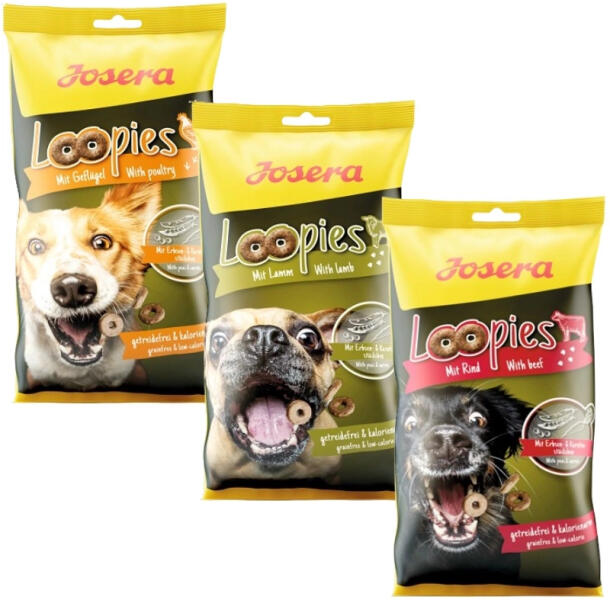 Josera Loopies Lamb 150g - Termékleírás A Josera Loopies bárányhússal ízletes alternatíva a baromfit nem toleráló kutyák számára. A zsírmentes recept olyan aromás fűszernövényeket, gyümölcsöket és zöldségeket is tartalmaz, amelyek még a legnyűgösebb kutyáknak is biztosan ízleni fognak. A jutalomfalatokat könnyű felosztani, és a kiképzés során jutalomfalatként is használható. Alacsony zsírtartalom. A takarmány 30% szárított húsfehérjét, valamint borsót és sárgarépát tartalmaz. A Josera Loopies mindazok számára lett kifejlesztve, akik számára különösen fontos az egészséges táplálkozás. Ezek is könnyen feloszthatók kisebb darabokra. Összetétel