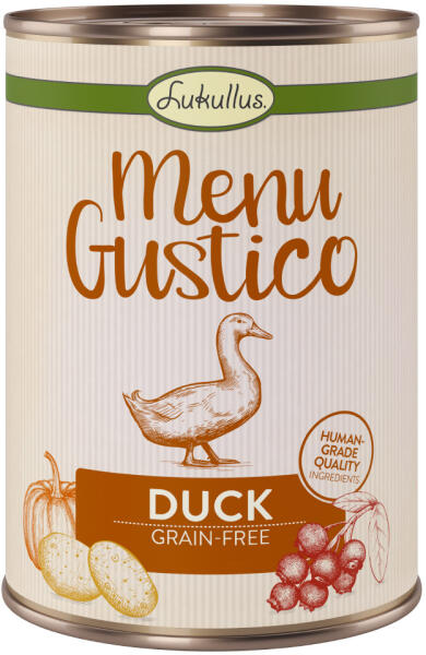 Lukullus 6x400g Lukullus Menu Gustico - kacsa & sárgarépa, áfonya, rozmaring nedves kutyatáp
