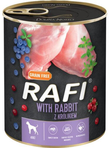 RAFI KUTYA PÁSTÉTOM NYÚL, VÖRÖS- ÉS KÉK ÁFONYÁVAL KONZERV 800G min rend. 6db - pet2000