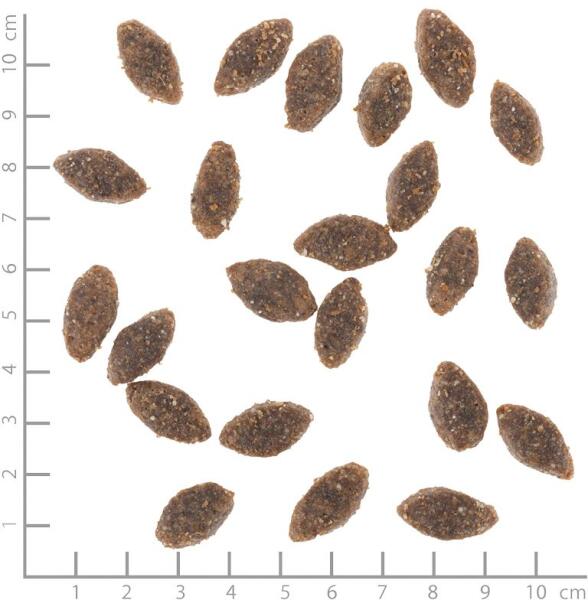 • A táp NEM TARTALMAZ kukoricát, búzát, sikért, hagyományos olajokat (repce-, napraforgó-, olíva- és dióolajat), iparilag előállított cukrokat, ízesítőszereket, szóját, K3 vitamint, tápiókakeményítőt (sűrítőanyag), mesterséges színezékeket, sem tartósítószereket.