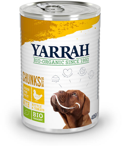 Yarrah 12x405g Yarrah Bio Falatkák bio csirke, bio csalán & bio paradicsom nedves kutyatáp